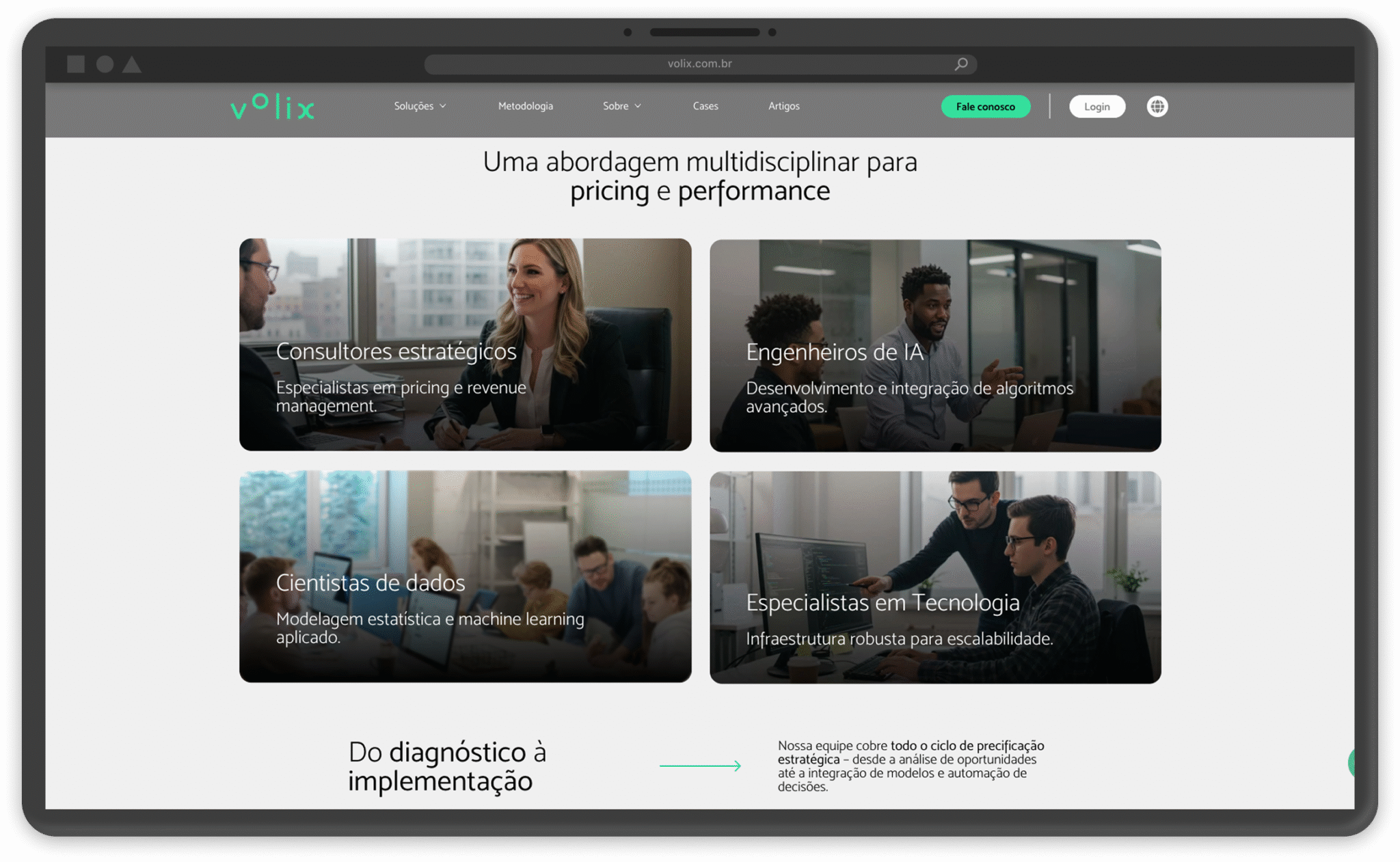 The proposal was to develop an intuitive, modern website with a design that reflected Volix's seriousness and expertise. The solution included a clear information architecture, a user experience (UX) focused on simplicity, and the integration of functionality that made it easier to manage content and add new functionality as the company grew.